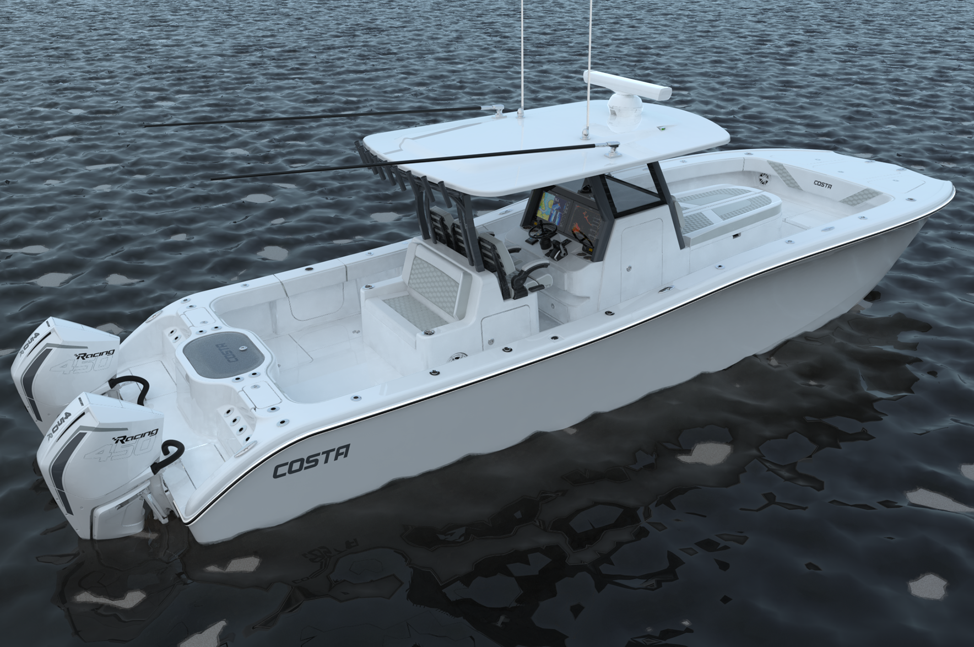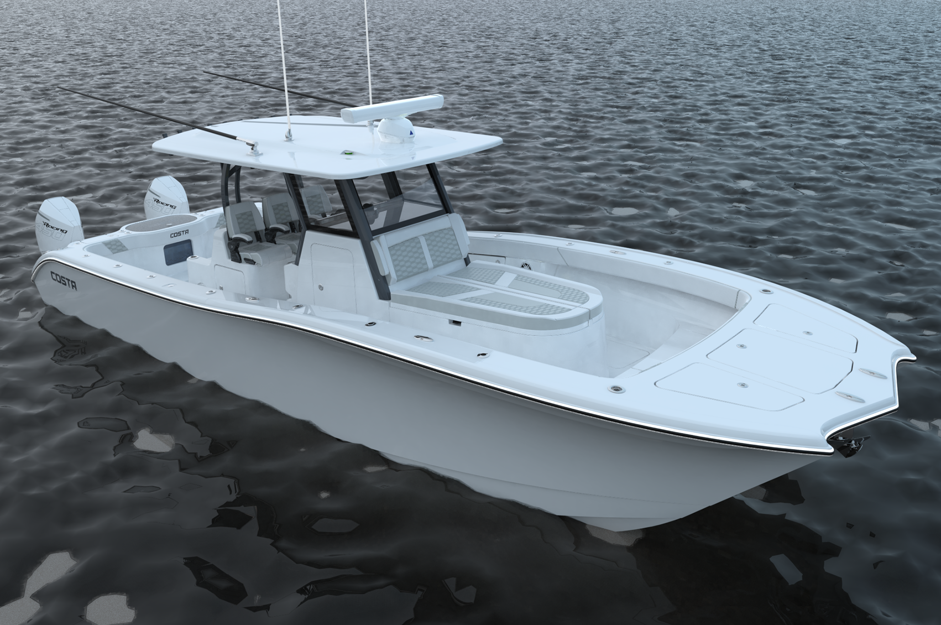 Developed 3D render database and produced photorealistic rendering package for Costa Custom Boats' latest 34CC offshore model.