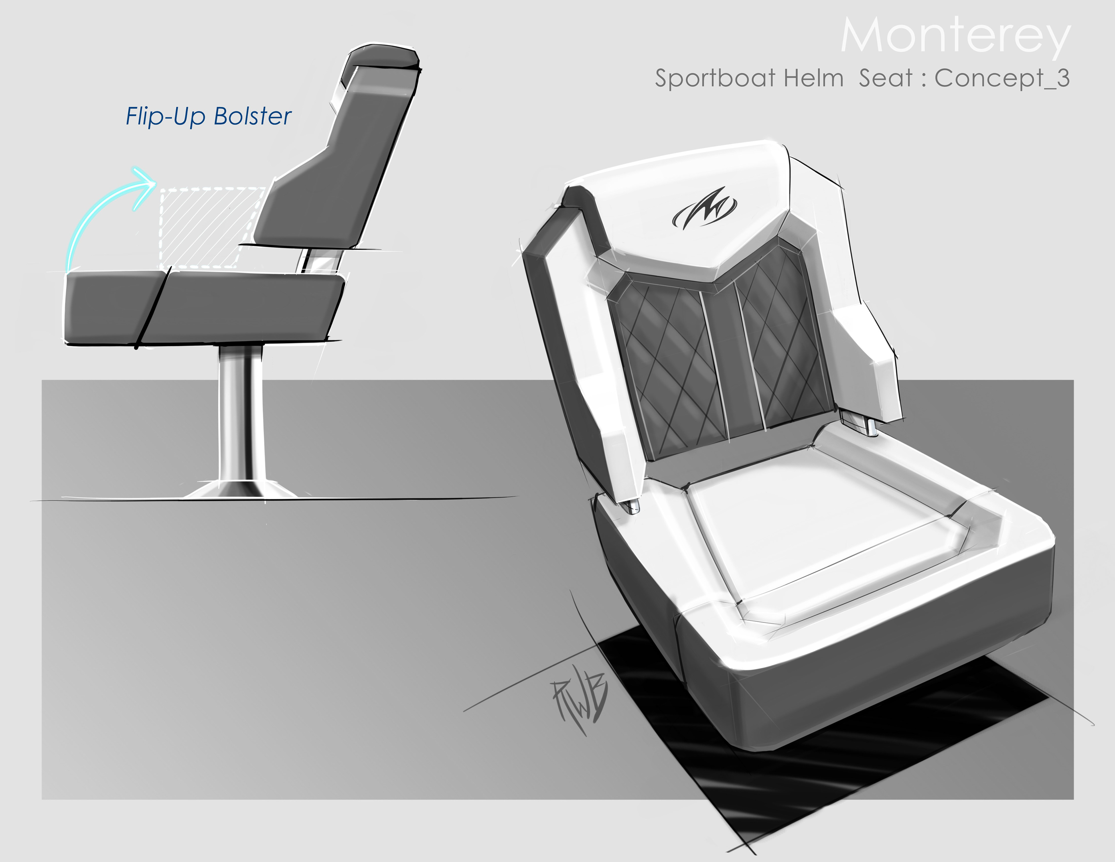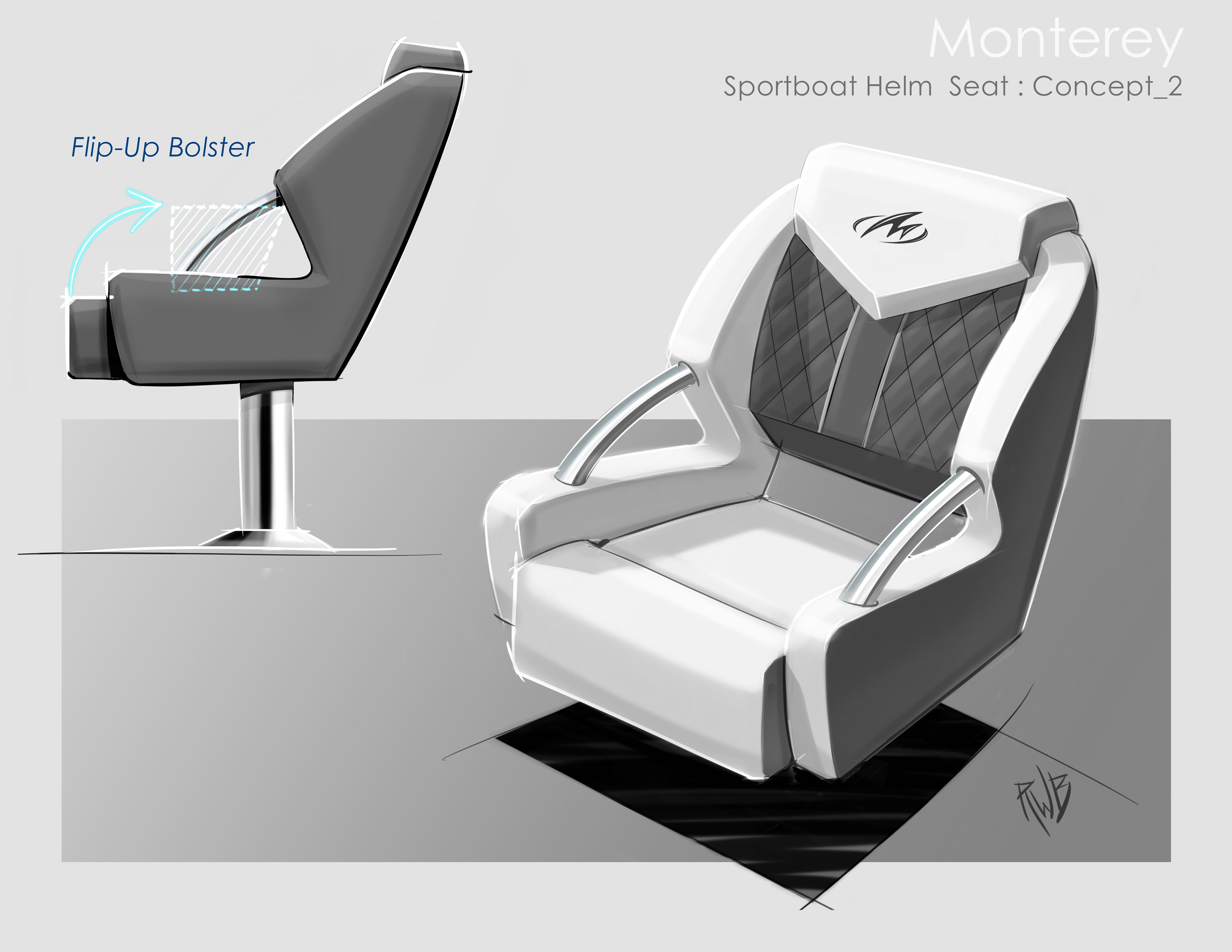 Worked closely with Monterey's engineering team and WISE seating to develop a new large helm seat to be used across a number of Monterey models.